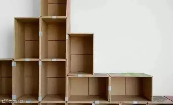 只需要把纸箱直接粘起来,再拼到一起,储物架就完成了。