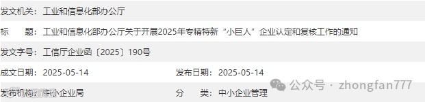 根据《优质中小企业梯度培育管理暂行办法》(以下简称《办法》),现组织开展2025年专精特新“小巨人”企业认定和复核工作。有关事项通知如下: