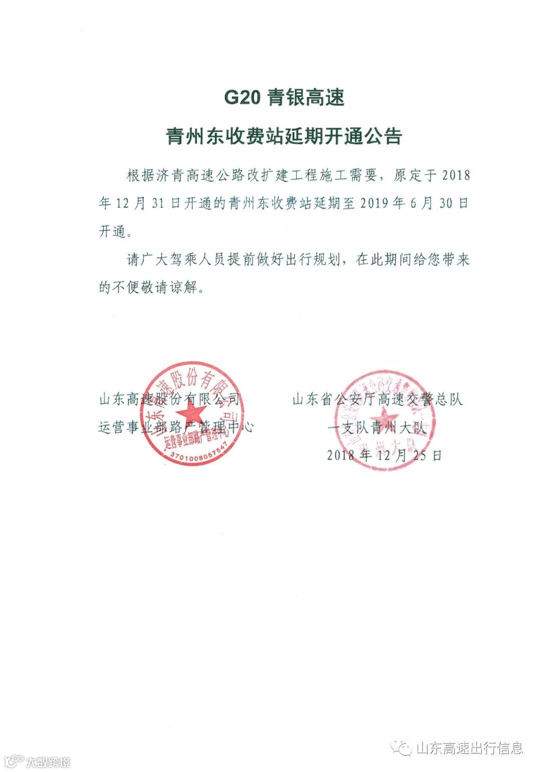 【告知】G20青银高速青州东收费站延期开通公告 鑫华安救援