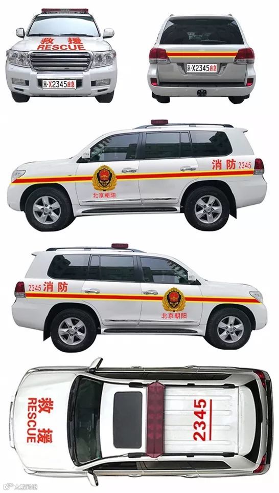 根据通知,悬挂专用号牌车辆外观参照国际通行做法进行标识涂装,车身前面涂装“救援RESCUE”字样,车身侧面涂装国家综合性消防救援队伍徽标、“消防”字样和所属单位名称、车辆编号,车顶涂装车辆编号,车身两侧及车辆尾部涂装装饰条。