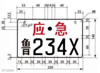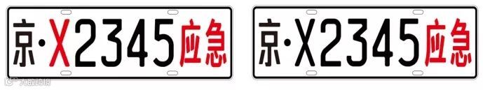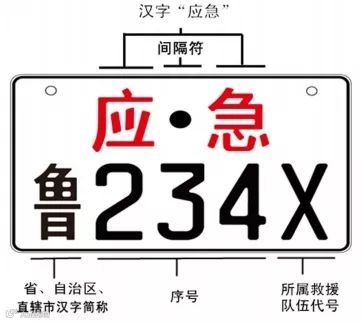 专用号牌为白底黑字,配以红色汉字“应急”。