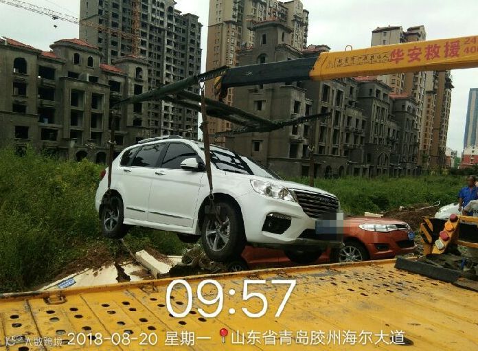 昨天凌晨,受台风影响胶州市普降暴雨。一处小区由于排水不畅导致积水,水位一度达到70厘米,40余辆私家车被泡。而小区北侧外墙和车位更是发生坍塌,十余辆停在车位上的私家车掉入坍塌后的废墟中。汽车被困后,客户拨打救援电话申请救援,正在值班的华安救援人员接到任务后,迅速驾驶救援车辆前往救援。救援人员到达现场后,凭借专业的技能和熟练的操作,顺利将客户汽车从困境中移出,并送往修理厂。