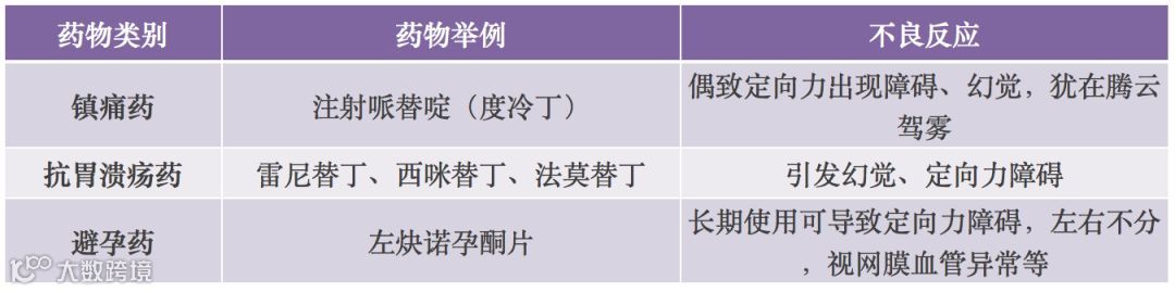 驾驶车辆过程中最重要的就是精神集中,如果服药后出现眩晕或幻觉,势必会影响驾车安全。具有此不良反应的药物主要包括以下几类: