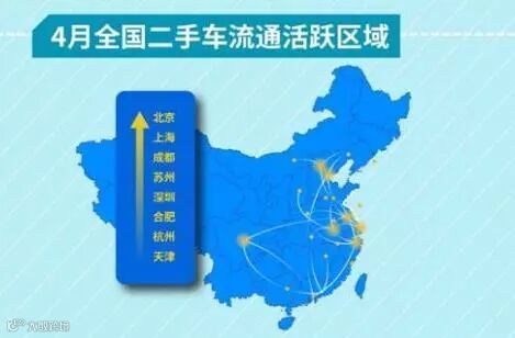 中国二手车线上拍卖平台发布了《4月个人卖车大数据报告》。报告显示,二手车车籍转出最活跃区域前三名分别为北京、上海和成都。