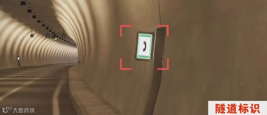 位于行车方向右侧,当在隧道内遇到事故时,第一时间,按下绿色按钮,就可直接与隧道管理人员通话,请求救援。