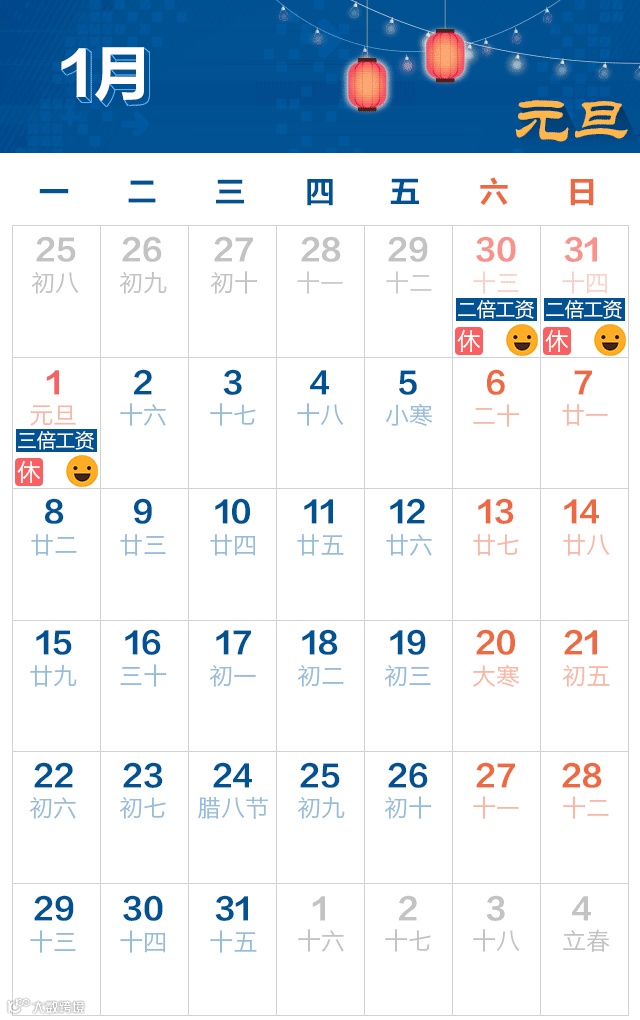 直接看日历吧