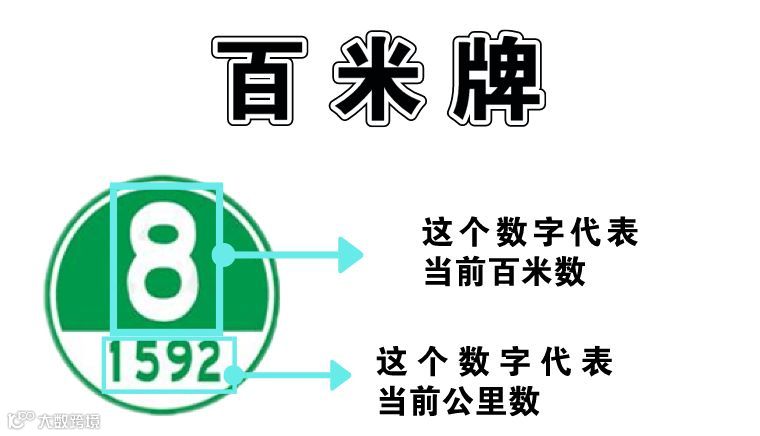 高速公路上每隔一公里就会有一个公里牌,每间隔一百米就会有一个百米牌,它们通常在道路右侧或中间。