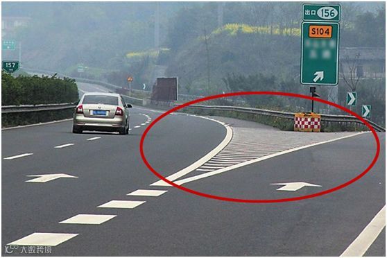 ②车行道纵向减速标线为一组平行于车行道分界线的菱形块虚线。车行道纵向减速标线属于一种“错视觉标线”,会让驾驶人在视觉上产生错觉,带给驾驶人一种车道变窄的压迫感,促使其减速行驶。