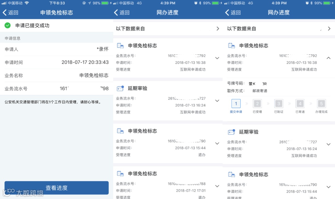 三、网上申请提交成功后,公安交通管理部门网办中心将在一个工作日内办理,期间您可以通过网办进度查询业务办理进度。