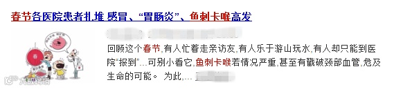每到新春佳节这段时间,人们大鱼大肉的同时,也是鱼刺卡喉的高发期,因鱼刺引发的“血案”屡见不鲜……