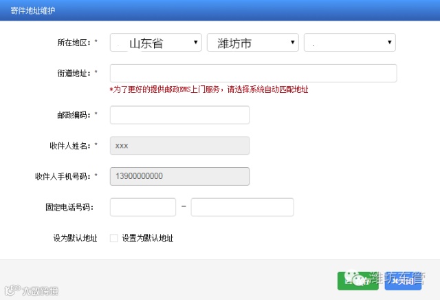 如果选择邮政寄递的方式,用户需认真填写驾驶证邮寄地址等相关信息。用户可以设置默认地址,删除地址,并且使用新地址。点击 [使用新地址],可以新增邮寄地址。