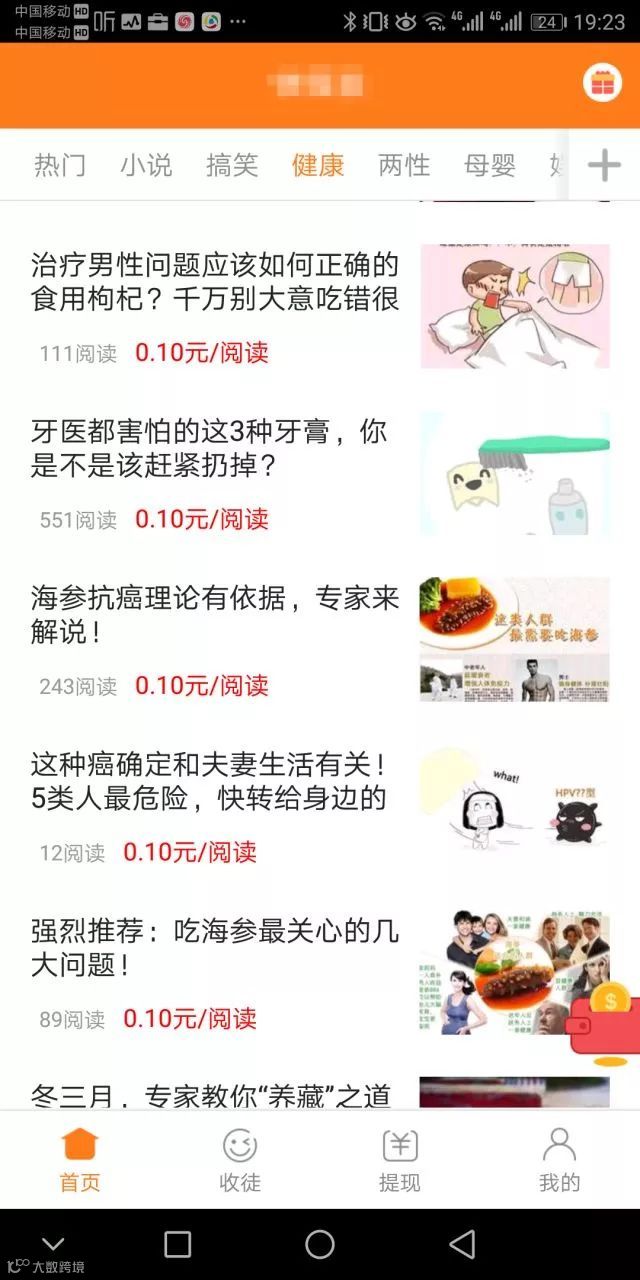同时,业内人士介绍,许多谣言页面上,特别最上端与下端,附有大量的推广二维码及广告内容,读者在阅读及转发的过程中也会使转发者获得一定的收益。记者根据这位人士的介绍,下载了几款APP,发现上面有大量带有广告的文章可以转发,价格一般为每条0.1元-0.12元。