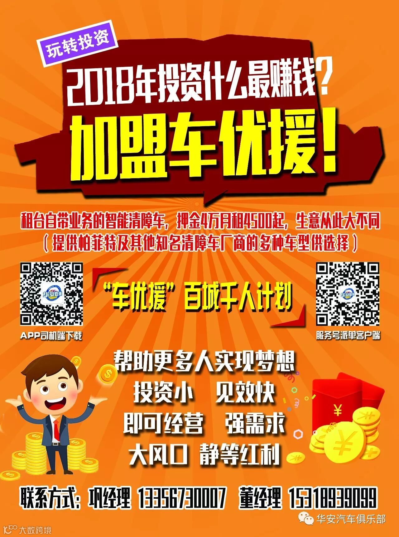 租台自带业务的清障车,押金4万,月租4500元起,三年赠车,以租代购,加盟“车优援”生意从此大不同!(提供帕菲特及其他知名清障车厂商的多种车型供选择)