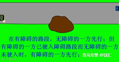 (二)在有障碍的路段,无障碍的一方先行;但有障碍的一方已驶入障碍路段而无障碍的一方未驶入时,有障碍的一方先行;