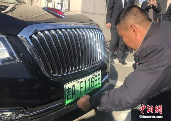 11月20日,吉林省长春市发出吉林省内第一副新能源汽车专用号牌。 中新社记者 张瑶 摄