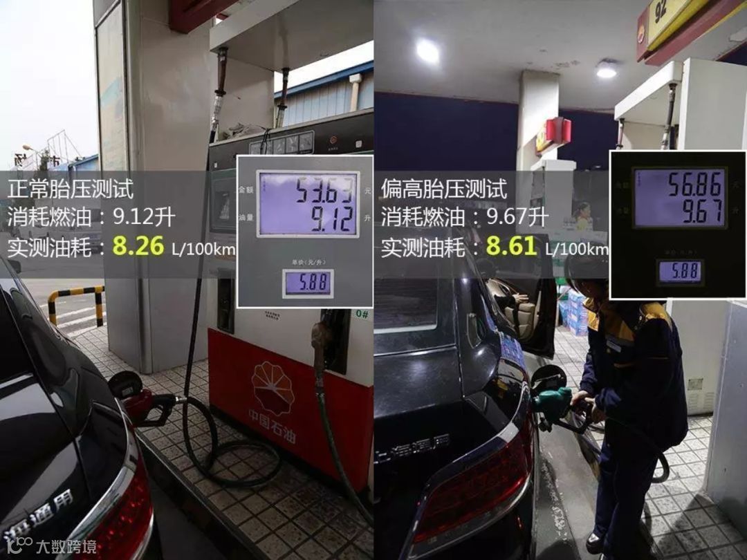 但测试结果与常识完全相反:高胎压(3.1bar)百公里油耗是8.41L,正常胎压(2.5bar)百公里8.26L。