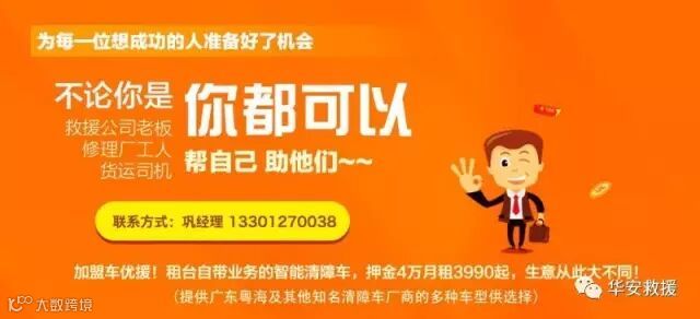 租台自带业务的清障车,押金4万月租3990元起,三年赠车,以租代购,加盟“车优援”生意从此大不同!(提供广东粤海及其他知名清障车厂商的多种车型供选择)