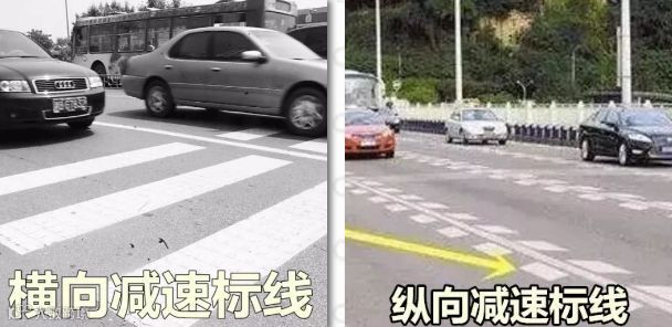 减速标线可分横向减速标线和纵向减速标线,中间实线的较为常见,表示减速且不允许随意变道,随意变道将被处罚。偶尔可见中间虚线的减速标志线,这种情况下是允许小心变道的。