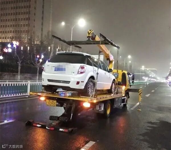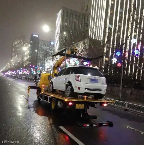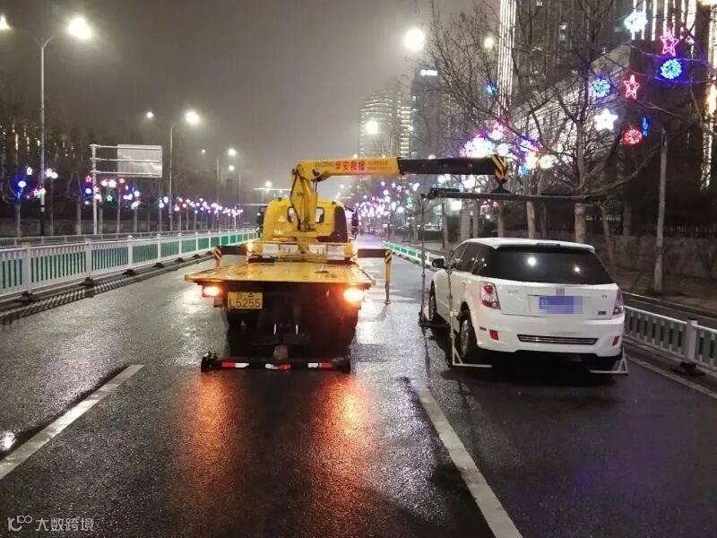 由于天色较暗,给救援带来了一定的难度,但是尹师傅凭借高超的救援技术和多年的工作经验,熟练操作,顺利将汽车运上救援车,并仔细做好防护措施。