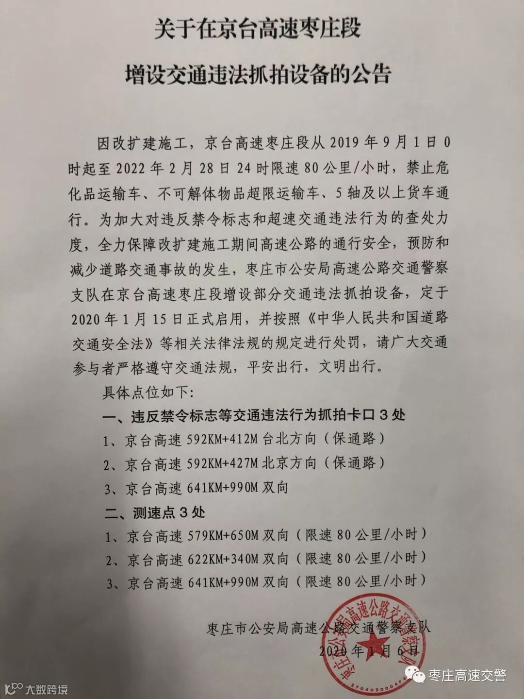 增设交通违法抓拍设备的公告