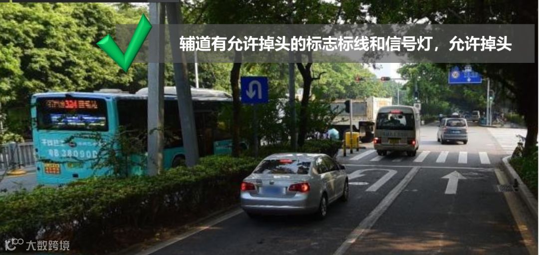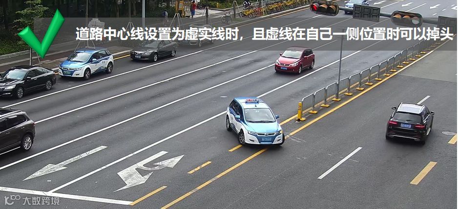 车辆在有允许掉头的标线和信号灯的路口(即使禁止左转)可以掉头,但车辆需根据信号灯指示通行。