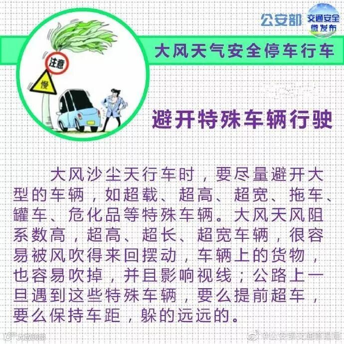 秋冬季节,高速行驶的汽车常常会受到横风作用,如果处置不当,往往诱发车祸。横风的作用是随车速提高而加剧的,车辆从隧道驶出的瞬间,或驶向风力贯穿的桥梁、高路堤等路段时,往往会突然遭到强横风的袭击。山区开车,容易遇到突如其来的山风,时间短而风力强,吹动车辆偏离行车路线。由于风速和风向的非连续变化,驾驶员会感到汽车发飘。
