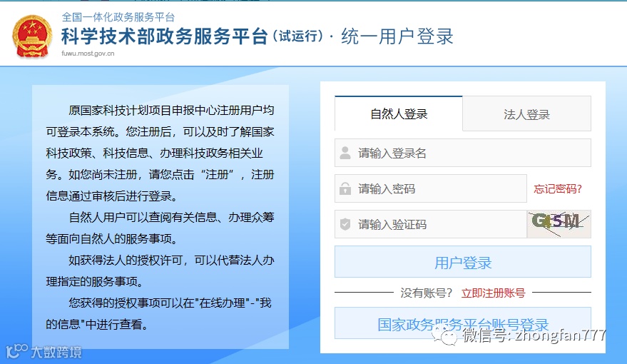 按照国务院政务服务平台要求,11月1日起,所有企业和个人用户办理高企、科小、统计、大赛等相关业务,需要从科技部政务服务平台(https://fuwu.most.gov.cn/authentication/sso/login)统一注册登录,账号和密码与火炬中心单点登录平台保持一致,如果发现登录不上,说明您已在科技部政务服务平台注册过账号,请用原科技部服务平台账号登录。