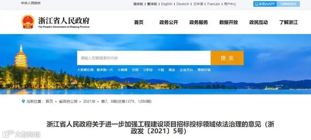 为进一步推进浙江省招投标体制机制创新,推动工程建设项目招投标统一市场建设,浙江省人民政府近日发布《关于进一步加强工程建设项目招标投标领域依法治理的意见》,2021年4月10日起施行。