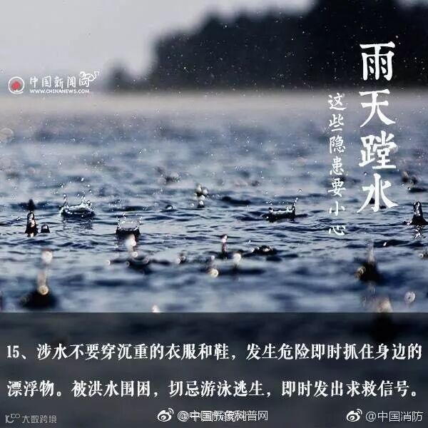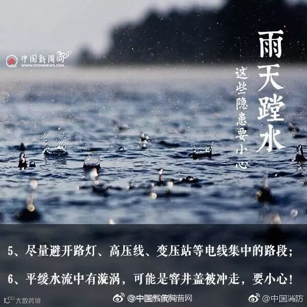 广州暴雨,导致多起触电事故发生。雨季出行,若万不得已必须蹚水,切记:平缓水流出现漩涡,很可能是窨井盖被冲走;行走时重心后置、前脚试探,可防止踩空被深井吸入;水中疑似触电时单脚跳出,另一只脚千万别接触水面…更多隐患戳↓