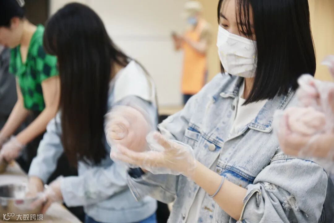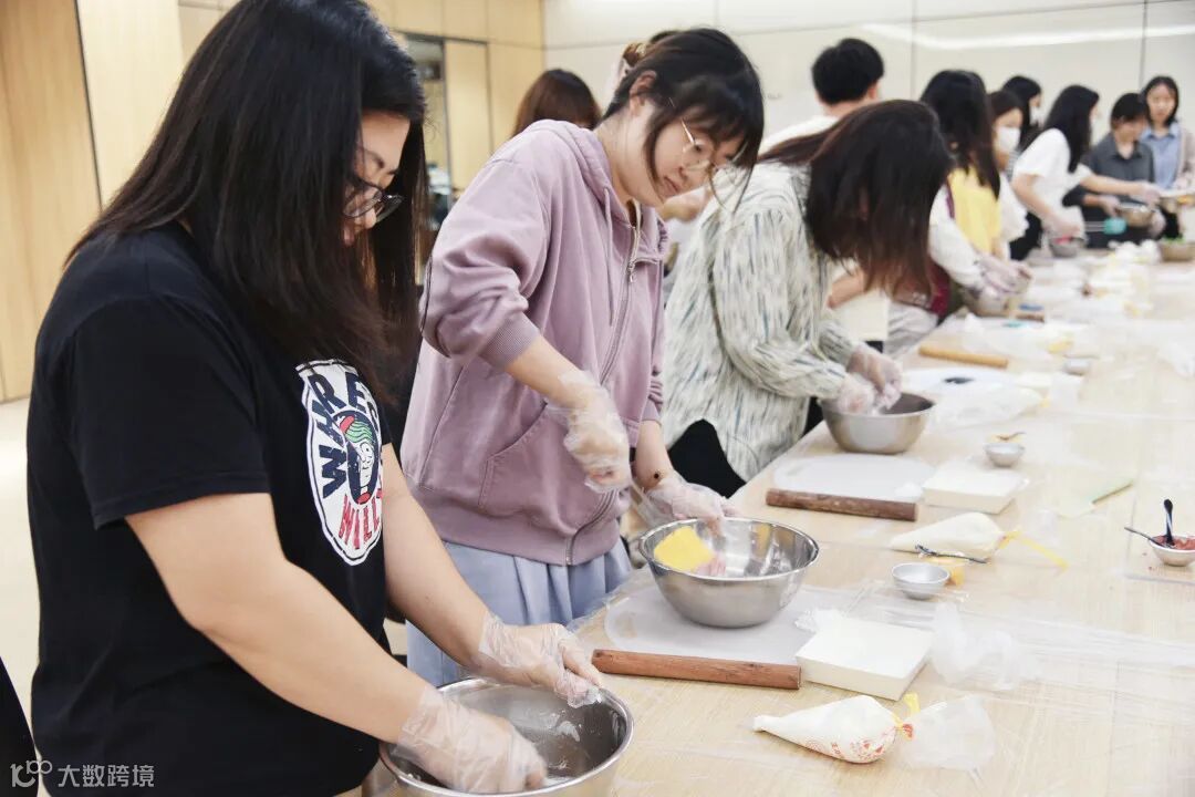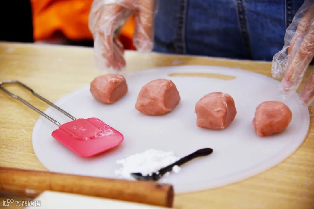 烫粉,和面、擀面皮、放置模具、挤奶油、放水果,还根据自己的口味和兴趣,或是添加草莓粉,或是展开想象巧手创意。不一会儿,一个个软糯Q弹、清甜饱满的雪媚娘诞生。