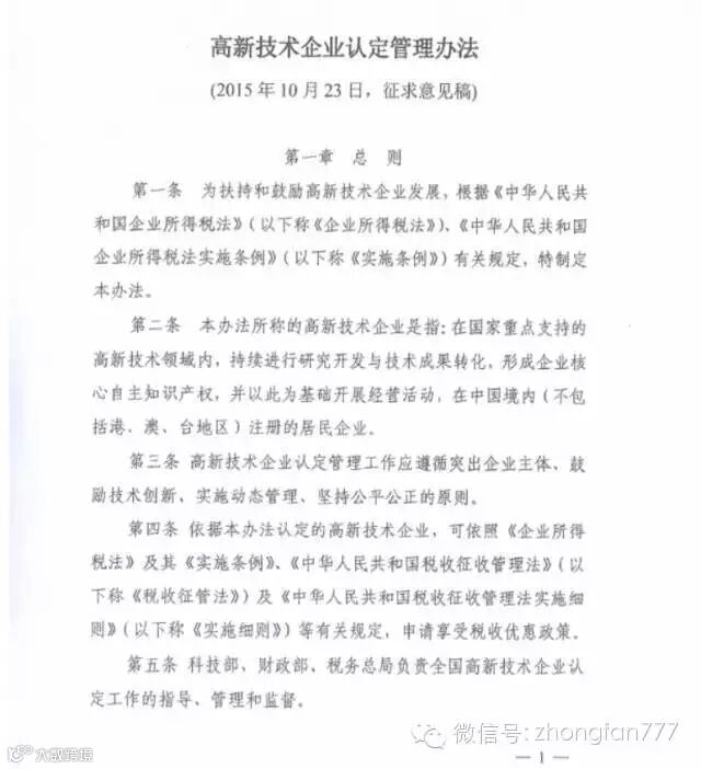 10月23号高新技术企业认定管理办法出新征求意见稿,在2016年正式实施。