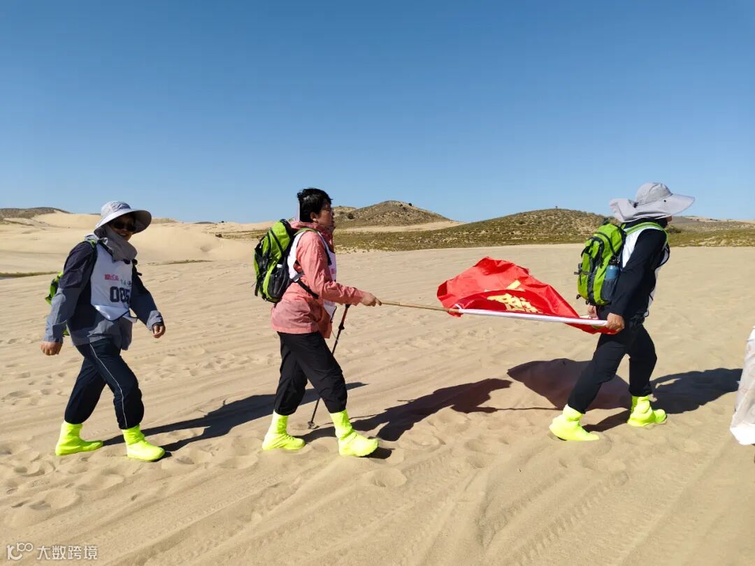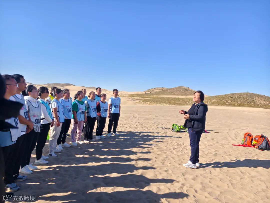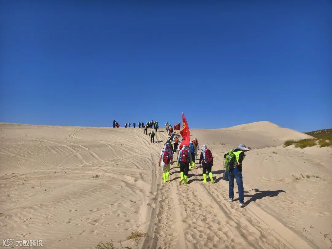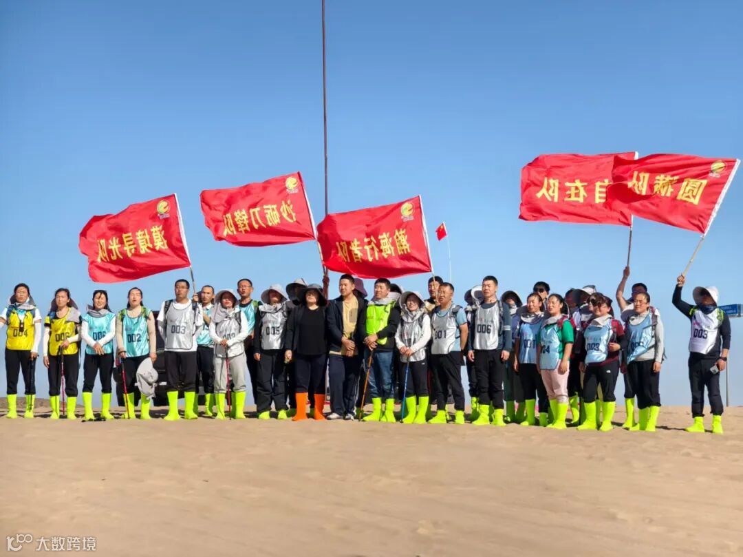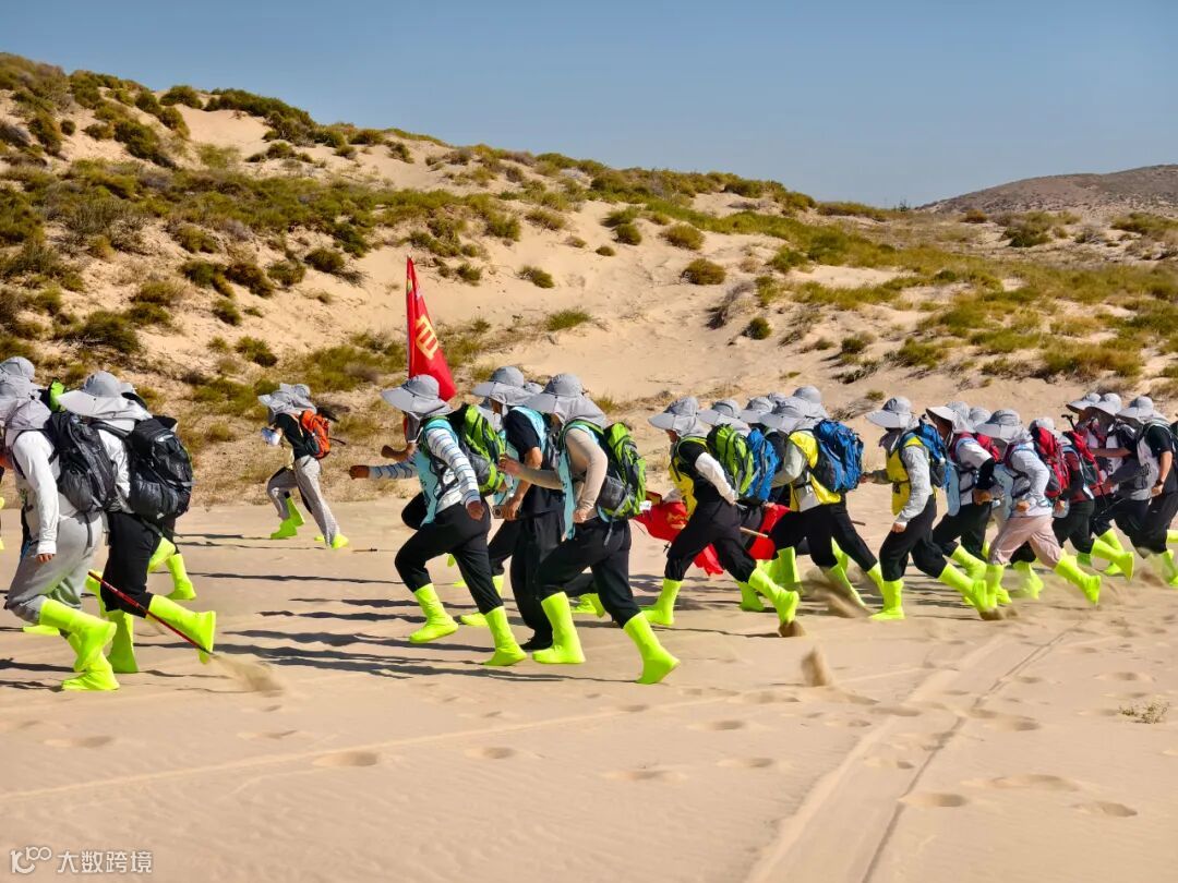 徒步路线涵盖了高低起伏的沙丘、平坦的沙谷等多种地貌。活动不仅是对个人耐力的挑战,更是对团队协作精神的深度淬炼。规则要求,各小组必须集体行动,最终以最后一名队员到达终点的时间计算成绩。这一规则深刻诠释了“一个人可以走得很快,但一群人才能走得更远”的团队真谛。在长达6小时的徒步征程中,各队队员相互扶持,彼此鼓励。当有队员体力不支时,总有同伴伸出援手,或帮忙背负行囊,或在一旁加油打气。汗水浸湿了衣背,沙粒钻进了鞋袜,但没有人轻言放弃,嘹亮的号子声和欢声笑语在空旷的沙漠中回荡,汇聚成一首动人的奋斗交响曲。