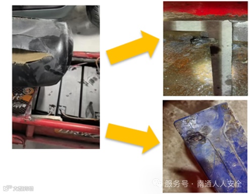 2025年3月27日7时17分许,某公司外车库电瓶车充电区,一电瓶车电瓶箱冒烟,随即使用灭火器进行扑灭。经调查发现,该车电瓶箱被私自改动后电池与突出物不断摩擦,且电瓶没有固定,导致电池外壳磨损并打火。