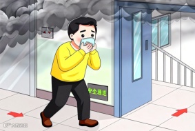 ■若楼道内浓烟少、火势小,沿疏散指示标志快速向下撤离至室外安全区域;