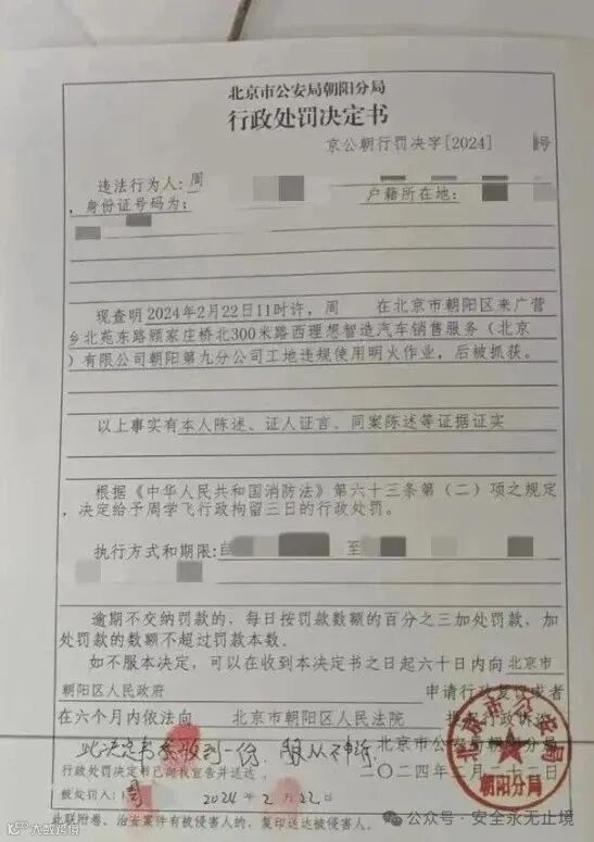2024年2月22日,北京市朝阳区消防救援支队消防执法人员在对一工地安全检查时,发现有人员明火作业但没有开具动火证,消防执法人员第一时间联系来广营派出所,将2名违规动火人员及一名管理人员带回派出所。
