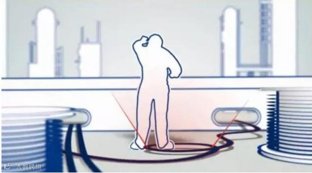 例如:使用物理屏障来清除指示哪些区域人们可以安全的工作和走动 ,哪些区域只能用机器 操作。
