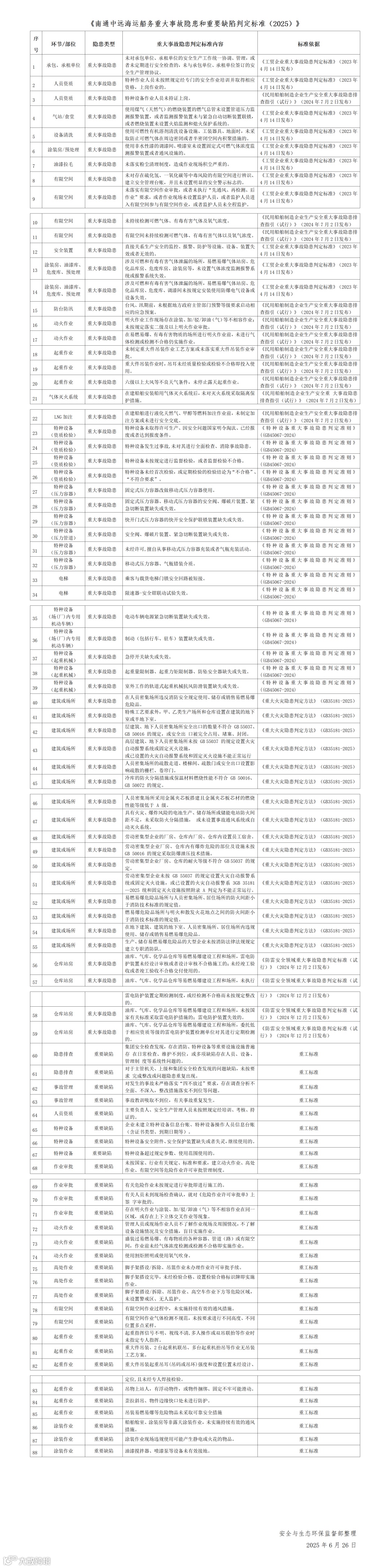 第五部分:南通中远海运船务重大事故隐患和重要缺陷判定标准(2025)