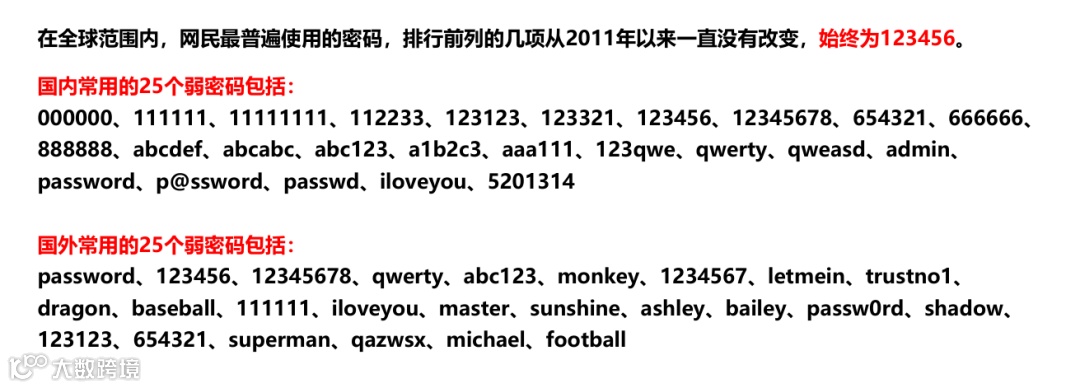 根据数百万个被盗密码的分析,十大不安全密码依次为: