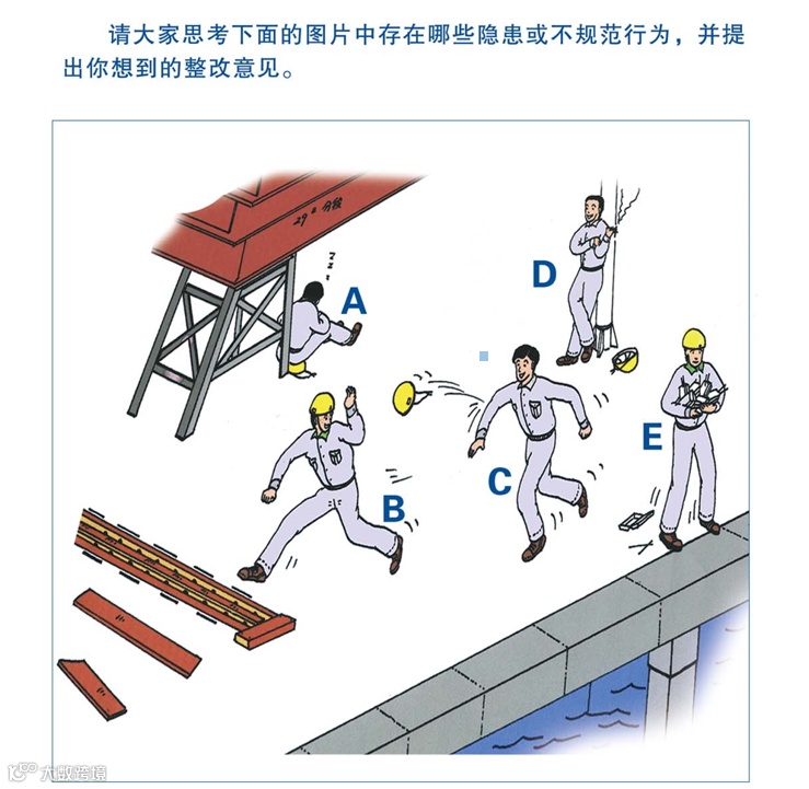 安全帽做凳子用,易损坏劳护用品从而达不到保护效果