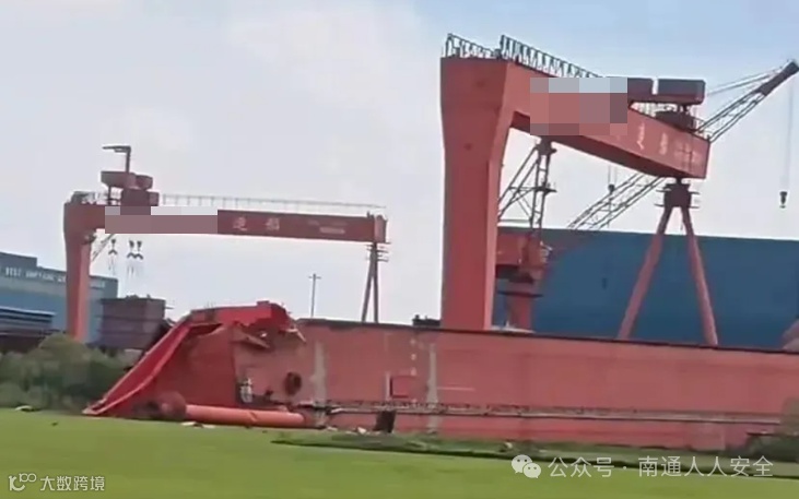 2024年9月17日,受13号台风“贝碧嘉”影响,太仓某船厂一龙门吊(1000t-186m)被吹倒。具体情况和原因待调查。