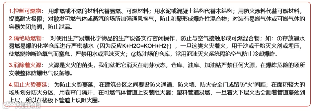 根据燃烧的基本条件,一切防火措施都为了防止燃烧的三个条件同时结合在一起,所以防火措施也就从这几个方面考虑。