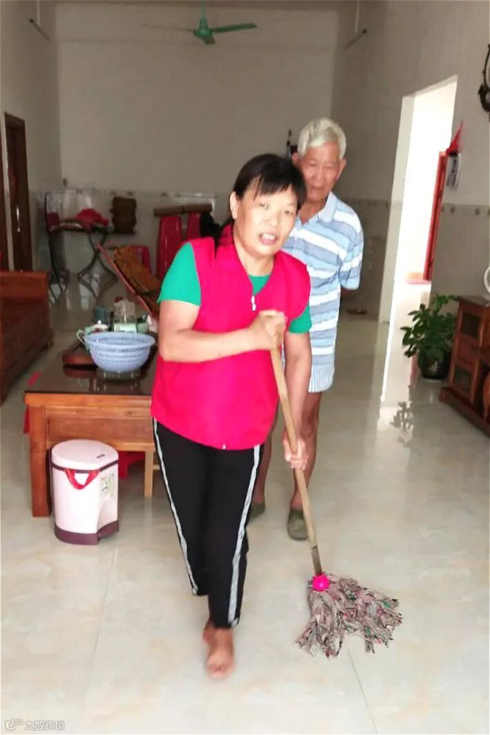 次日,关爱铃服务团队与家政人员又来到了平山街道鲤鱼岭村的林伯伯家中进行包月家政服务。林伯伯选择了2小时家政保洁、1次生活照料和1次精神慰藉。惠顺好家政的戴阿姨随后完成了家政服务,林伯伯对服务质量评价良好,并与戴阿姨进行了合影。