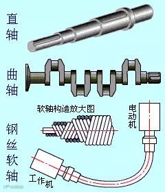 轴的类型很多,按轴线形状不同可分为直轴、曲轴和挠性轴。曲轴常用于往复式机械(如内燃机、空气压缩机等)中,挠性轴可将旋转运动灵活地传到所需要的位置,常用于医疗设备中,我们在文章中只讨论直轴。