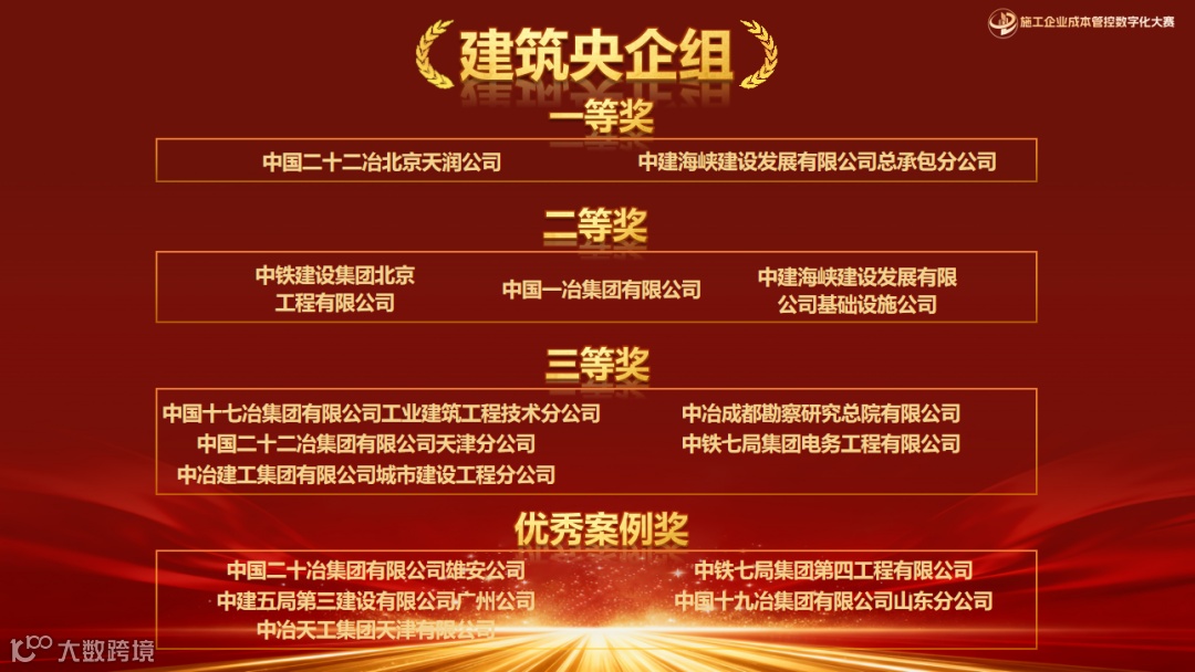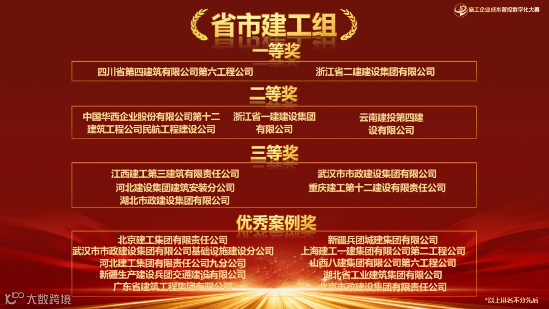经过路演答辩与激烈角逐,成本大赛总决赛隆重揭晓建筑央企组、省市建工组、民营企业组各组别一等奖、二等奖、三等奖。