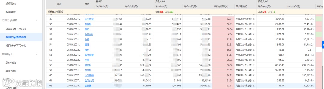 深入报价合理性分析,畸形报价分析,过高过低检查一目了然。
