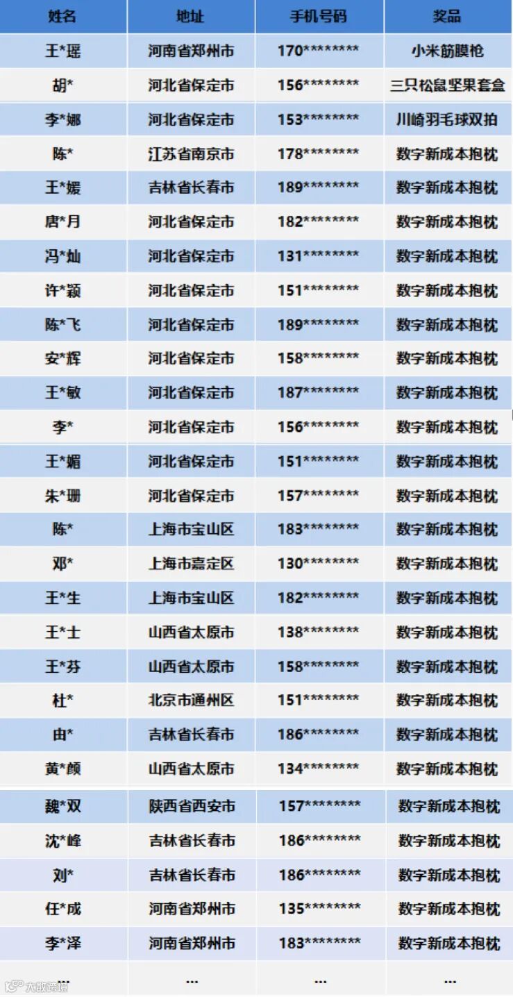 中奖名单揭晓!