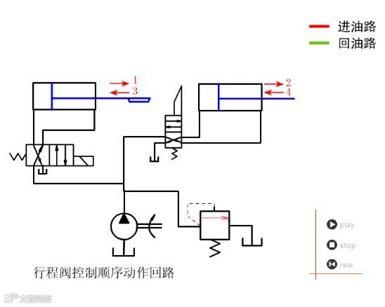 63.行程开关和电磁换向阀控制的顺序运动回路