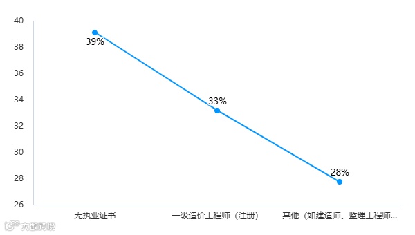 证书普及率低:39.12%无执业证书,一级造价工程师持证者占33.16%。