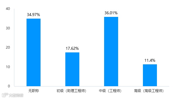 中级职称为主:36.01%持有中级工程师职称,高级职称仅11.4%。