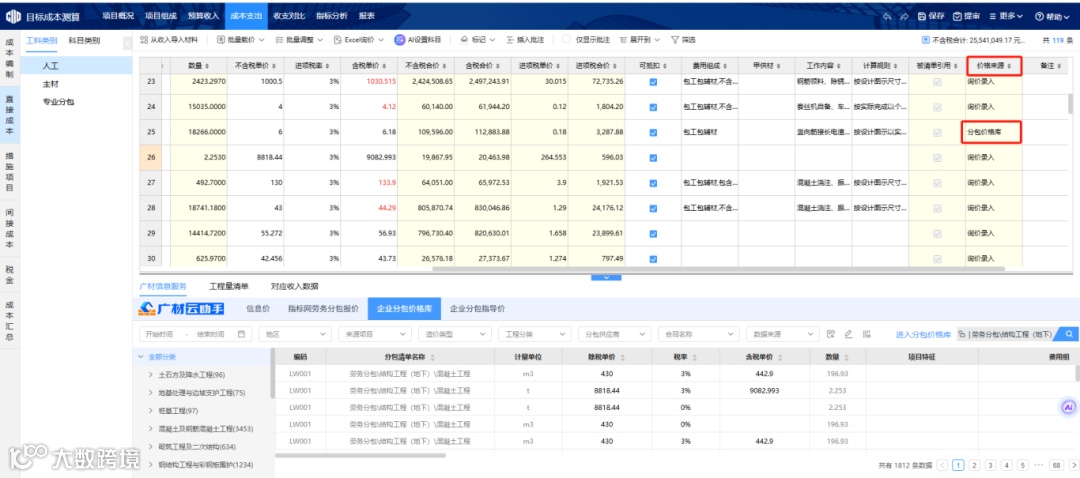 集中沉淀询价数据、真实分包合同价、材料采购合同价。